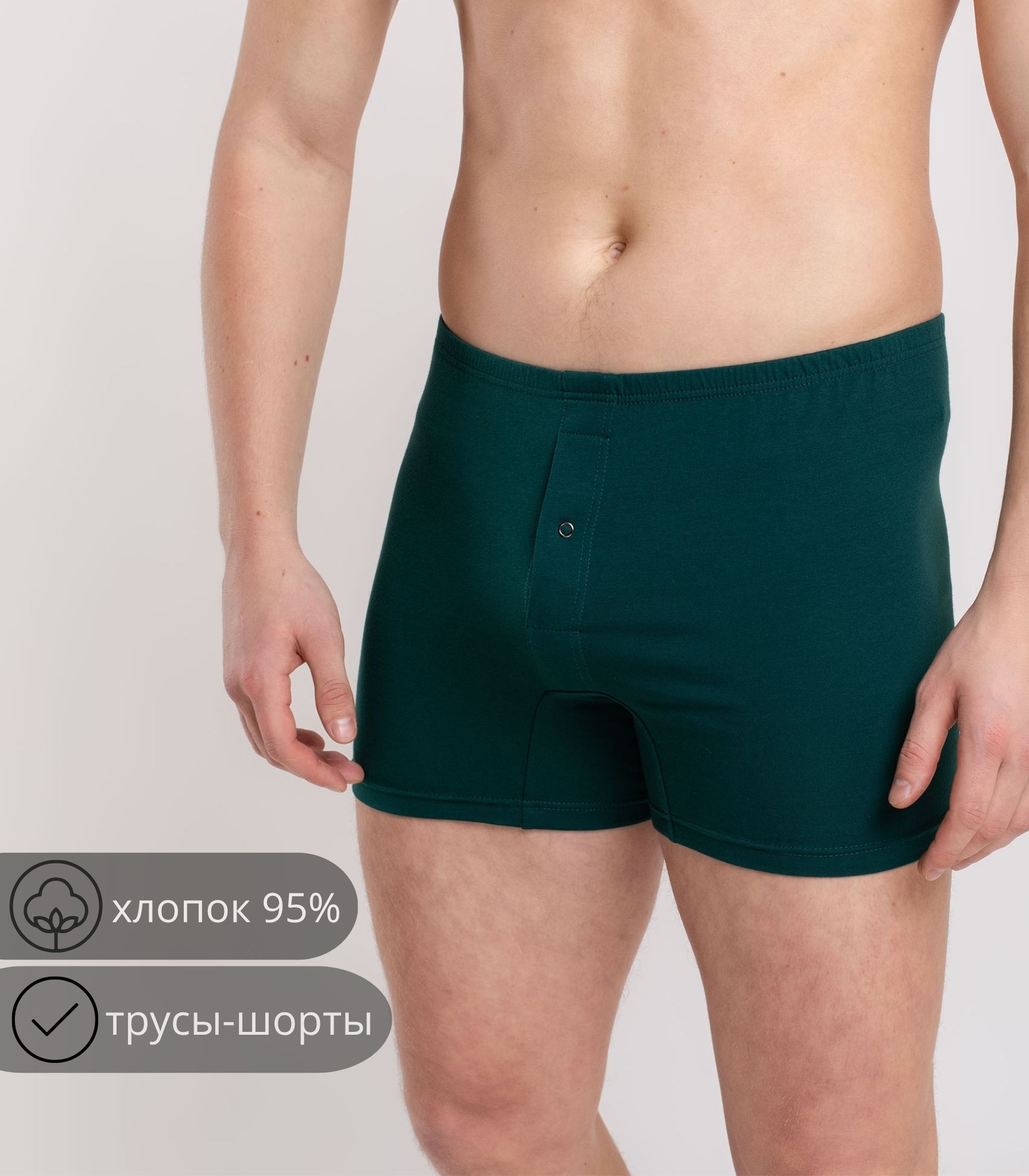 Мужские трусы-шорты выполнены из качественного хлопка. Модель на удобном эластичном поясе, который не сдавливает кожу и не ощущается на теле. Благодаря свободному крою трусы не сковывают движений и комфортны в течение дня.;