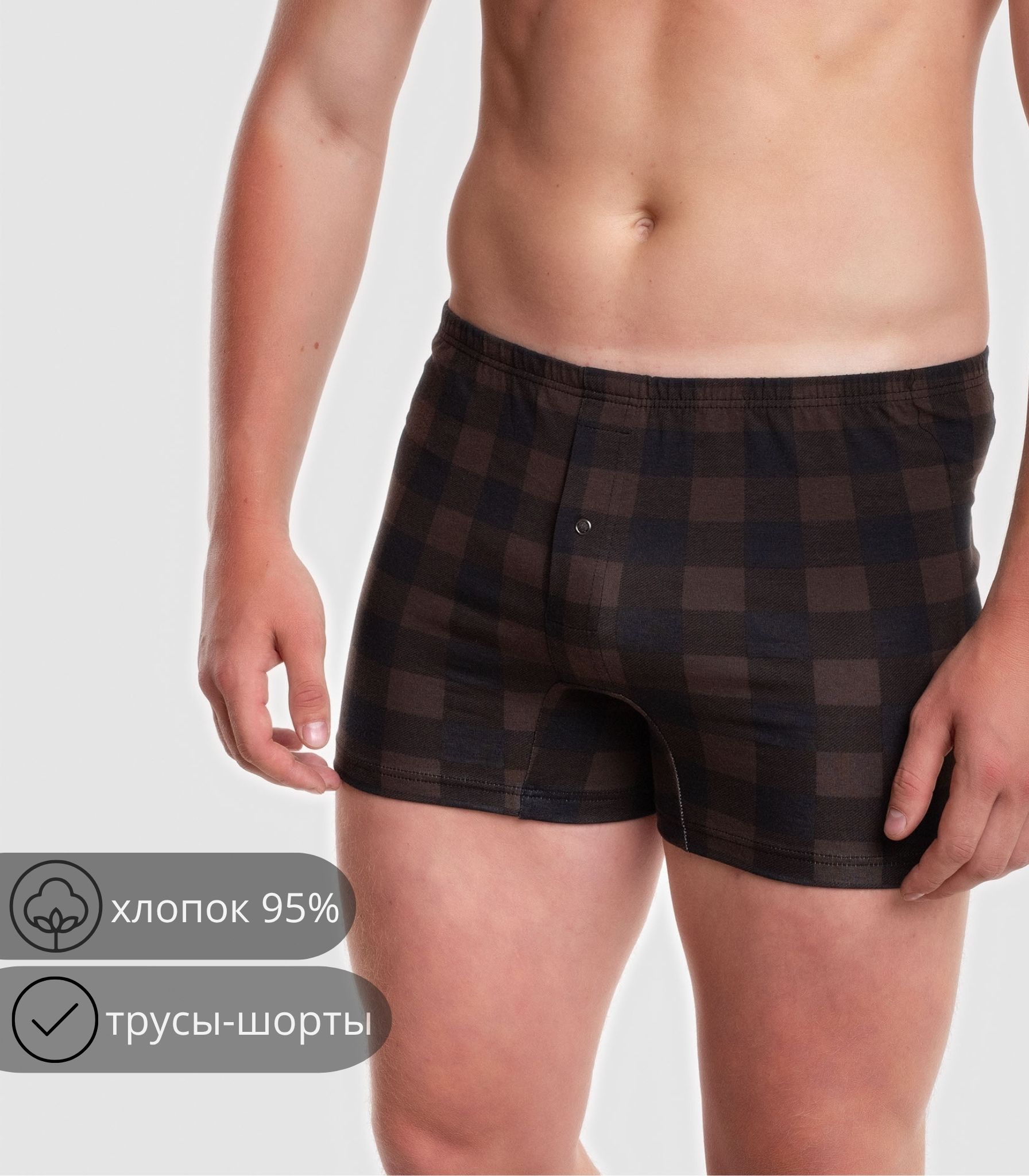Мужские трусы-шорты выполнены из качественного хлопка. Модель на удобном эластичном поясе, который не сдавливает кожу и не ощущается на теле. Благодаря свободному крою трусы не сковывают движений и комфортны в течение дня.;