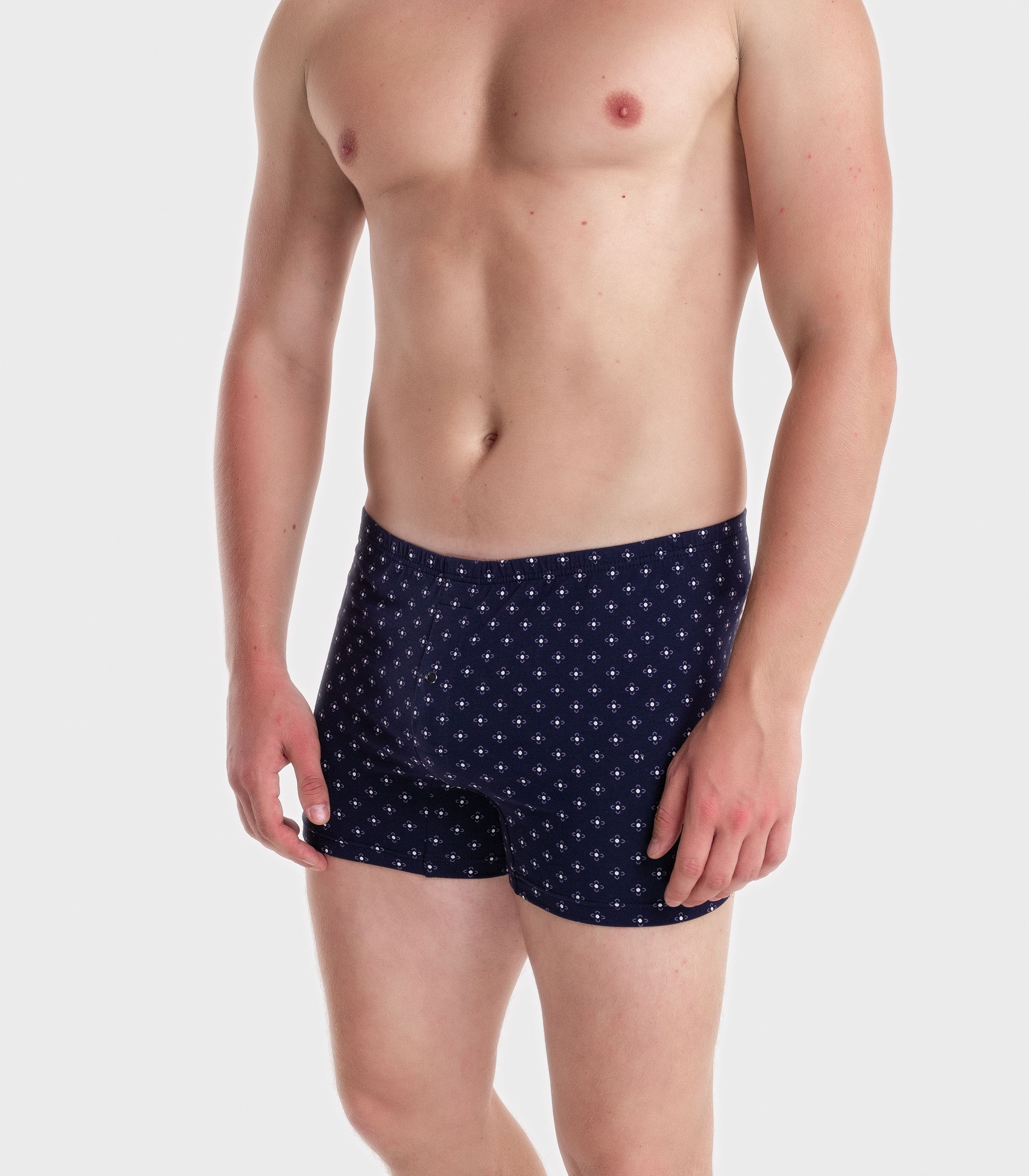 Мужские трусы-шорты выполнены из качественного хлопка. Модель на удобном эластичном поясе, который не сдавливает кожу и не ощущается на теле. Благодаря свободному крою трусы не сковывают движений и комфортны в течение дня.;