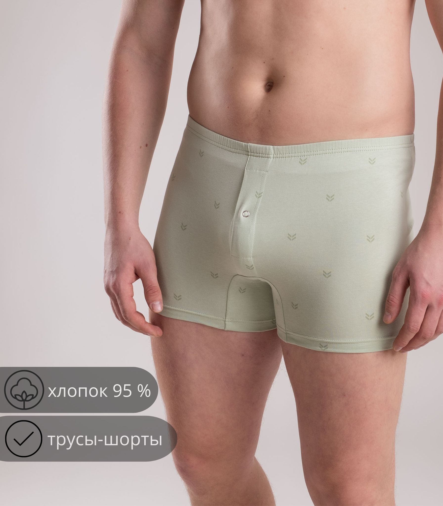 Мужские трусы-шорты выполнены из качественного хлопка. Модель на удобном эластичном поясе, который не сдавливает кожу и не ощущается на теле. Благодаря свободному крою трусы не сковывают движений и комфортны в течение дня.;