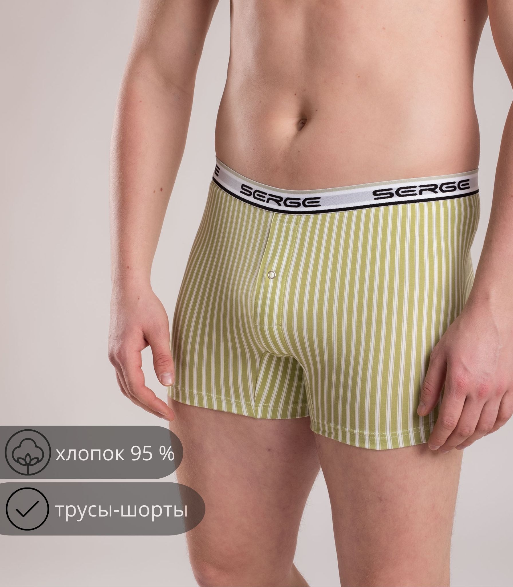Мужские трусы-шорты выполнены из качественного хлопка. Модель на удобном эластичном поясе, который не сдавливает кожу и не ощущается на теле. Благодаря свободному крою трусы не сковывают движений и комфортны в течение дня.;