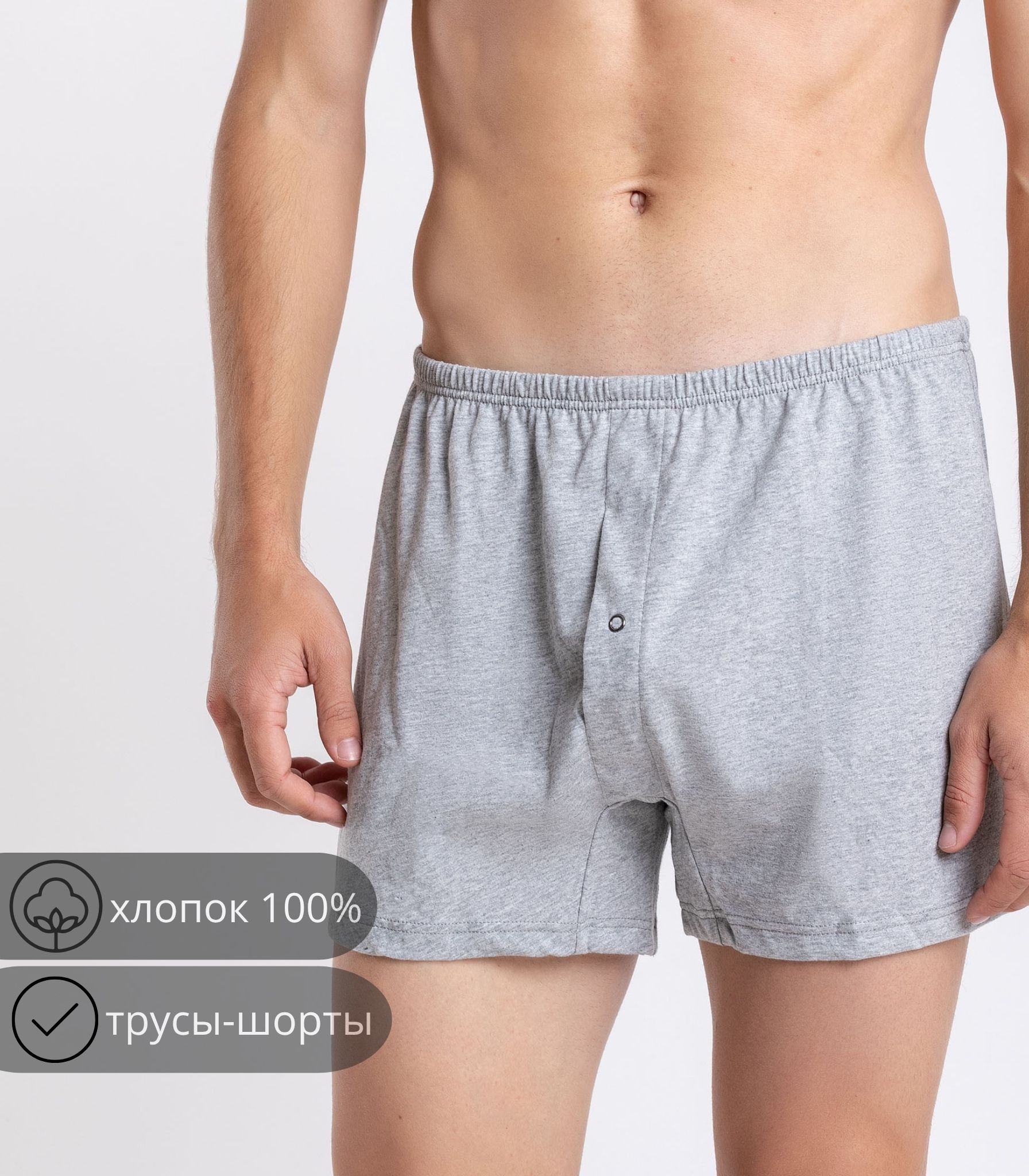 Удобные хлопковые трусы-шорты для мужчин. Натуральный материал дарит чувство комфорта и свободу движений. Прочная эластичная резинка не сдавливает кожу и надёжно удерживает трусы на своём месте, а плоские внутренние швы не натирают. Модель без шва на задней детали.;