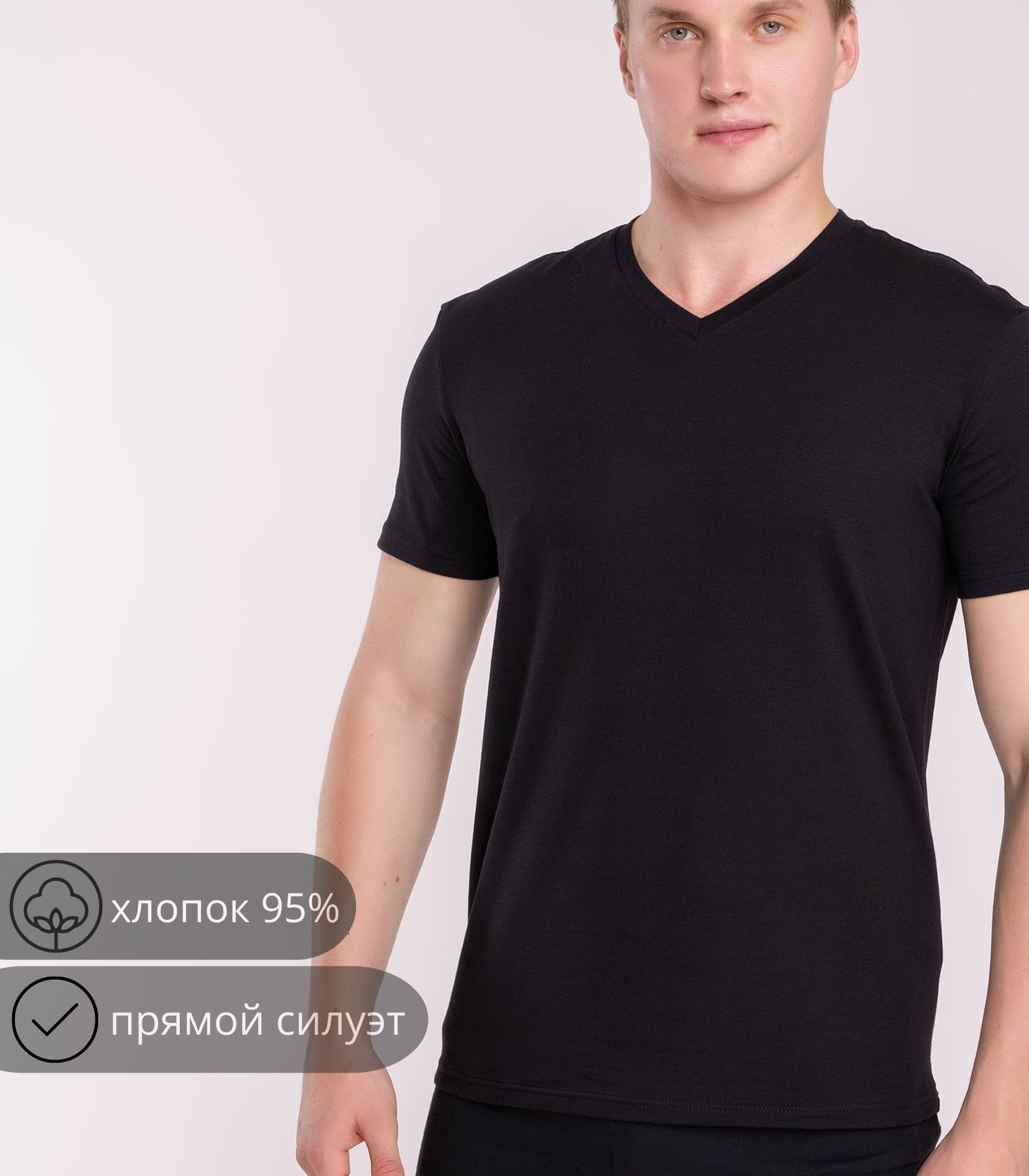 Фуфайка мужская выполнена из высококачественного хлопка. Модель свободного силуэта с коротким рукавом и треугольным вырезом горловины. Фуфайка отлично подходит для повседневной носки и хорошо сочетается со многими элементами базового гардероба.;