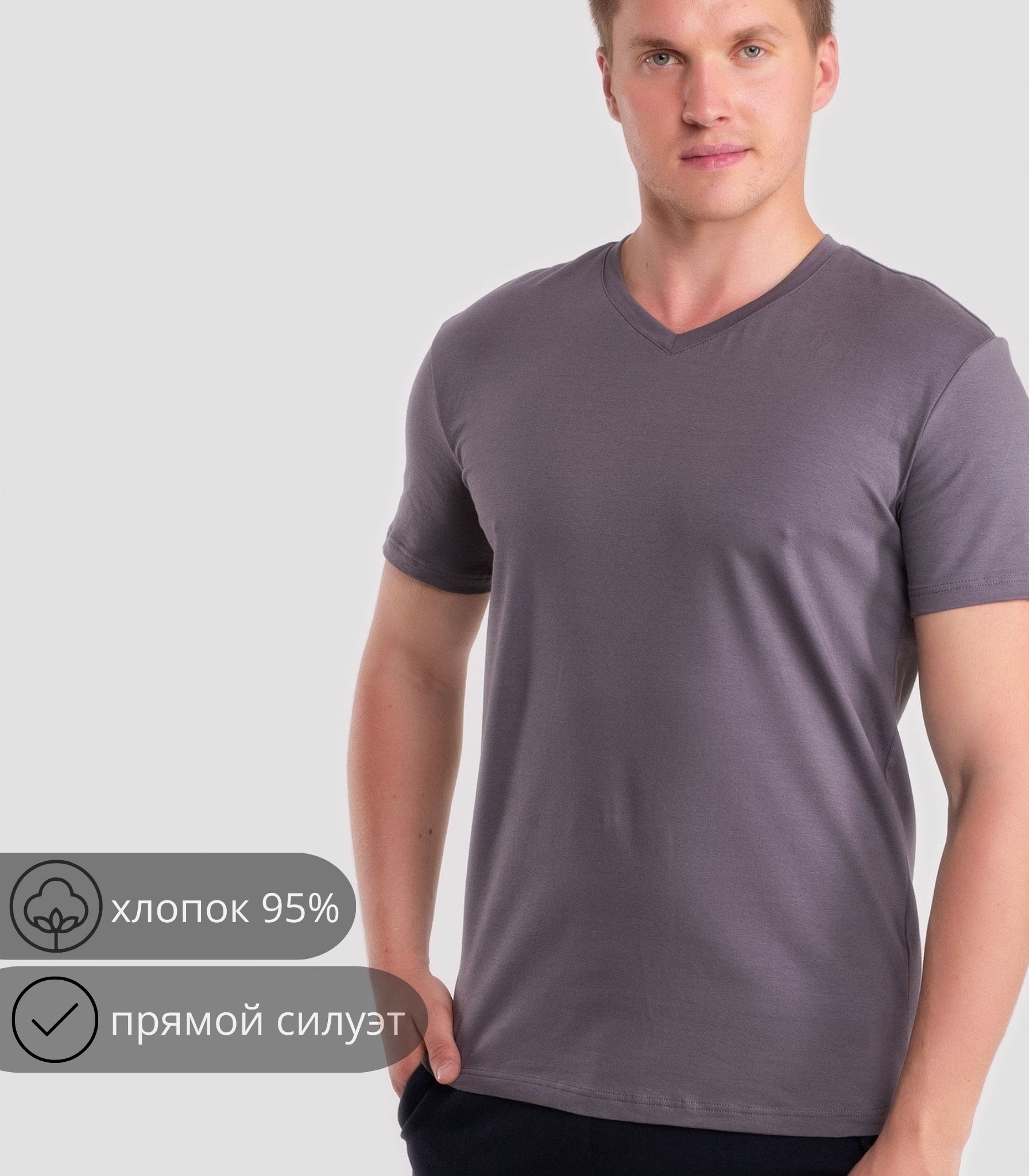Фуфайка мужская выполнена из высококачественного хлопка. Модель свободного силуэта с коротким рукавом и треугольным вырезом горловины. Фуфайка отлично подходит для повседневной носки и хорошо сочетается со многими элементами базового гардероба.;
