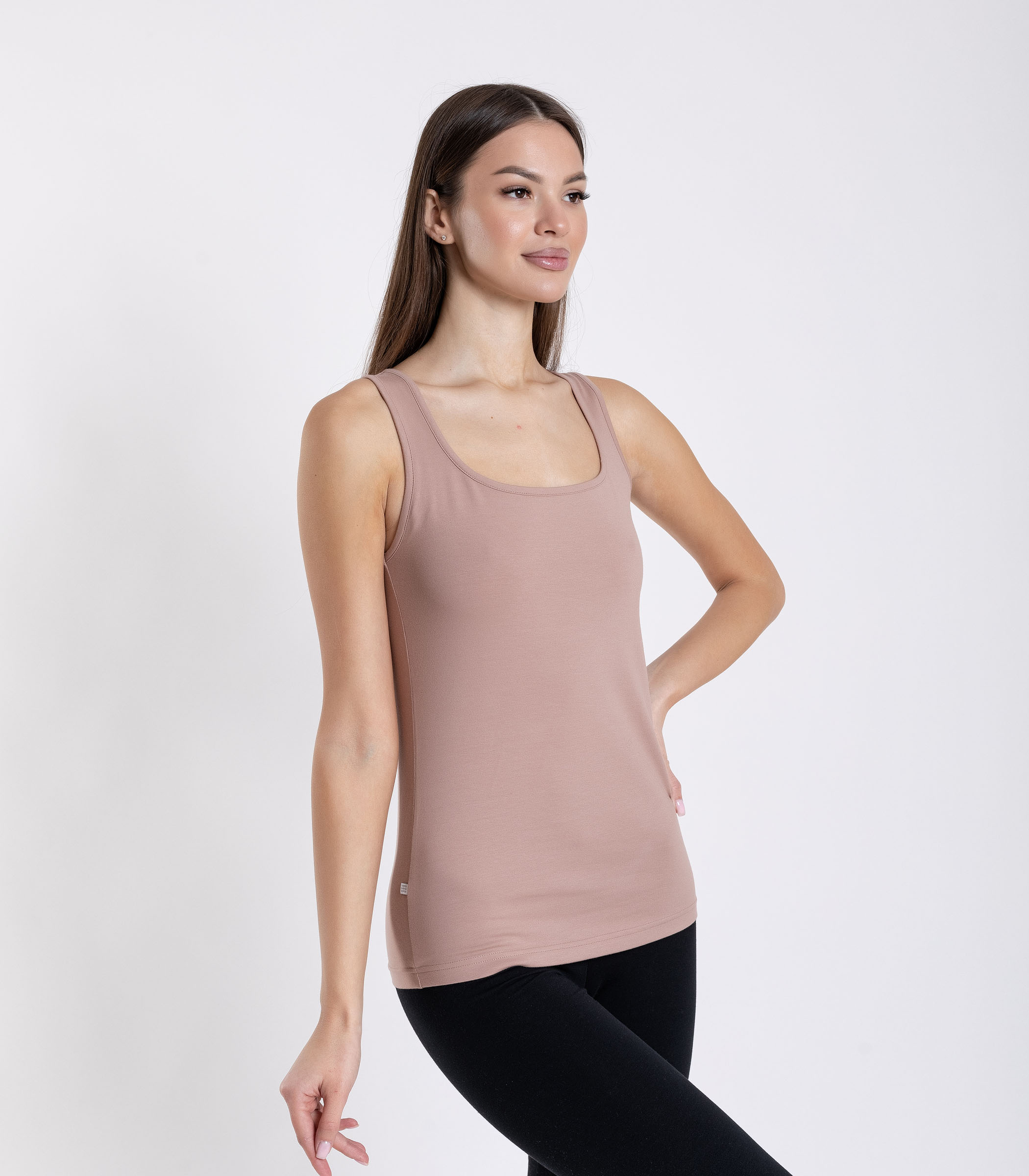 Приталеная и очень привлекательная маечка на широкой бретельке. Она отлично дополнит твой спортивный или домашний образ.