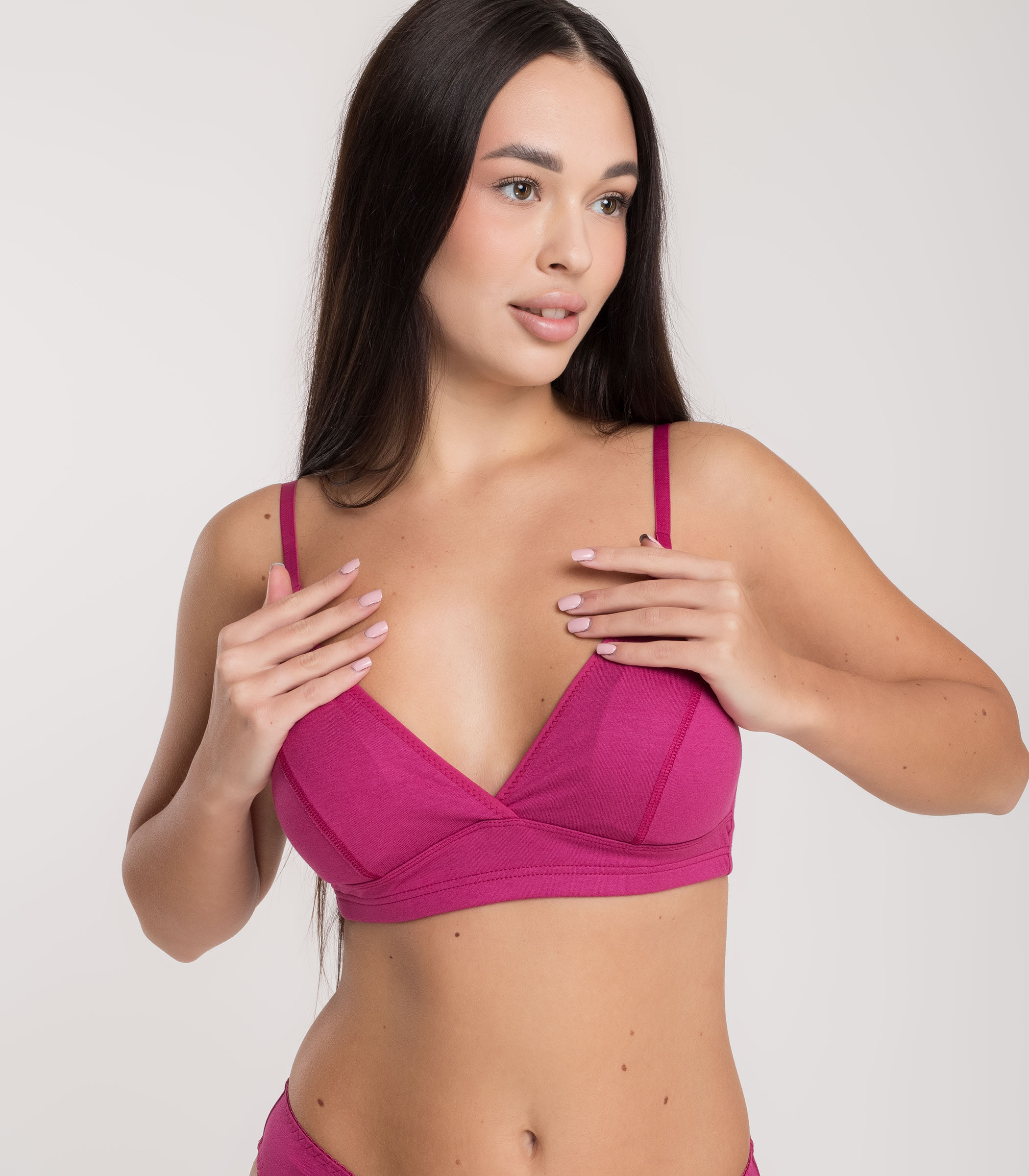 Базовое бюстье из мягкой вискозы. Модель на тонких регулируемых бретелях обеспечивает максимальный комфорт и поддержку груди. Бюстье подходит для занятий спортом, повседневной носки, отдыха и фитнеса.