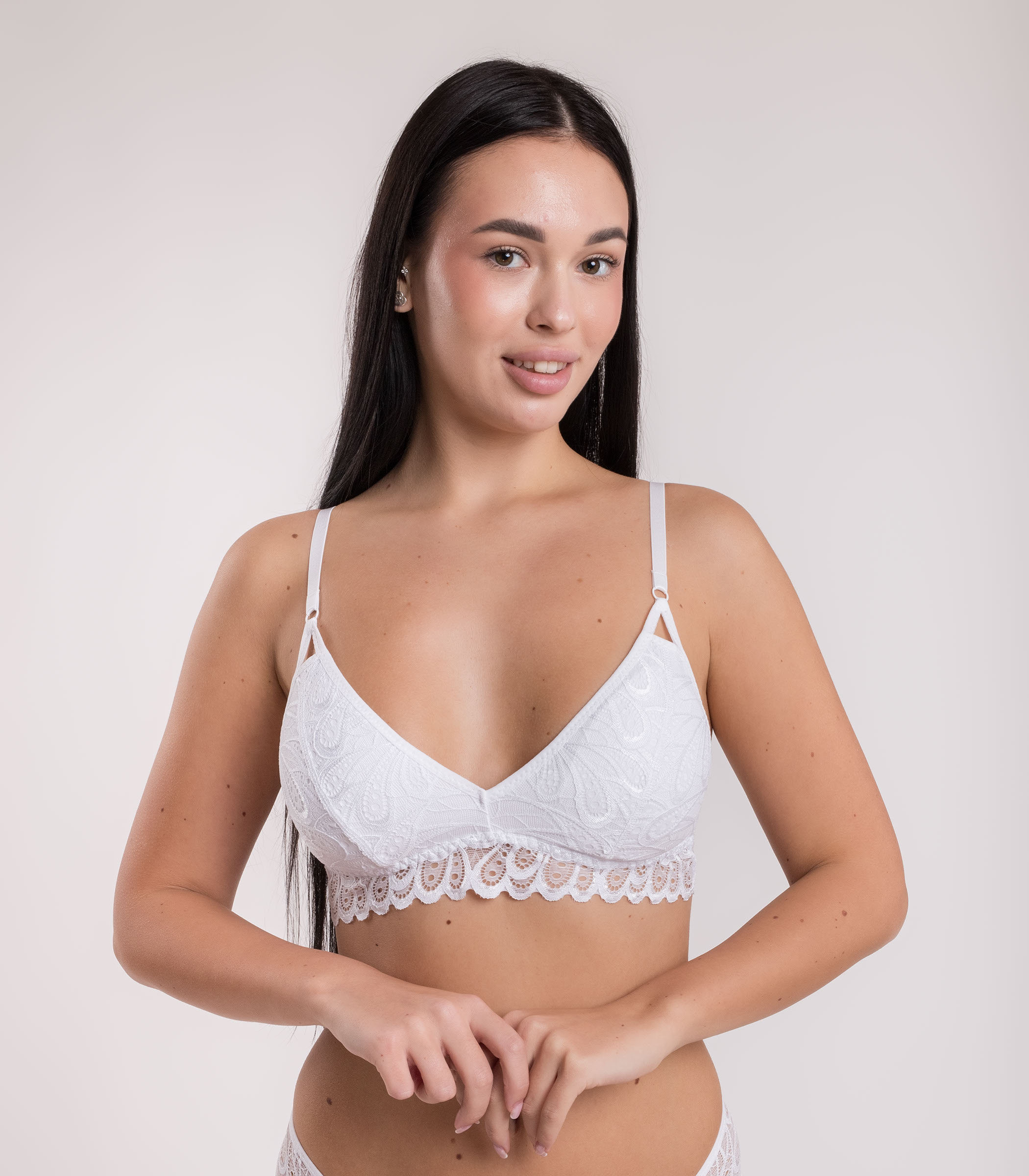 Эффектное бюстье с чашками выполнено из ажурного кружева. Модель на застежке с тонким бретелями на регуляции отлично сидит и хорошо поддержвает грудь. Бюстье без косточек не ощущается во время носки и практически не заметно под одеждой любого фасона и стиля.;