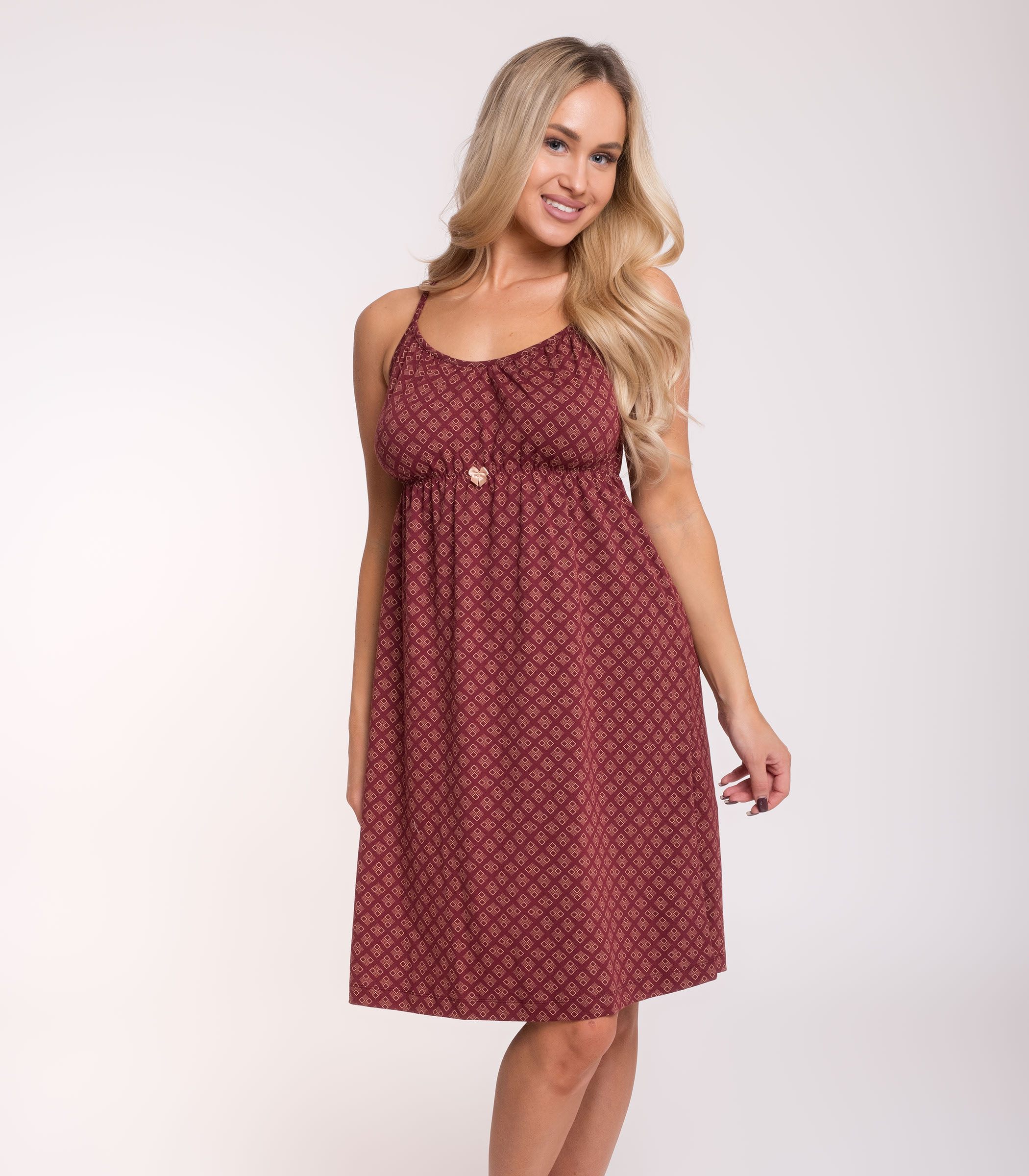 Хлопковая женская сорочка на тонких бретелях свободного силуэта с нежной отделкой. Сорочка отлично садится на все типы фигур, обеспечивает ощущение комфорта, удобства и легкости.;