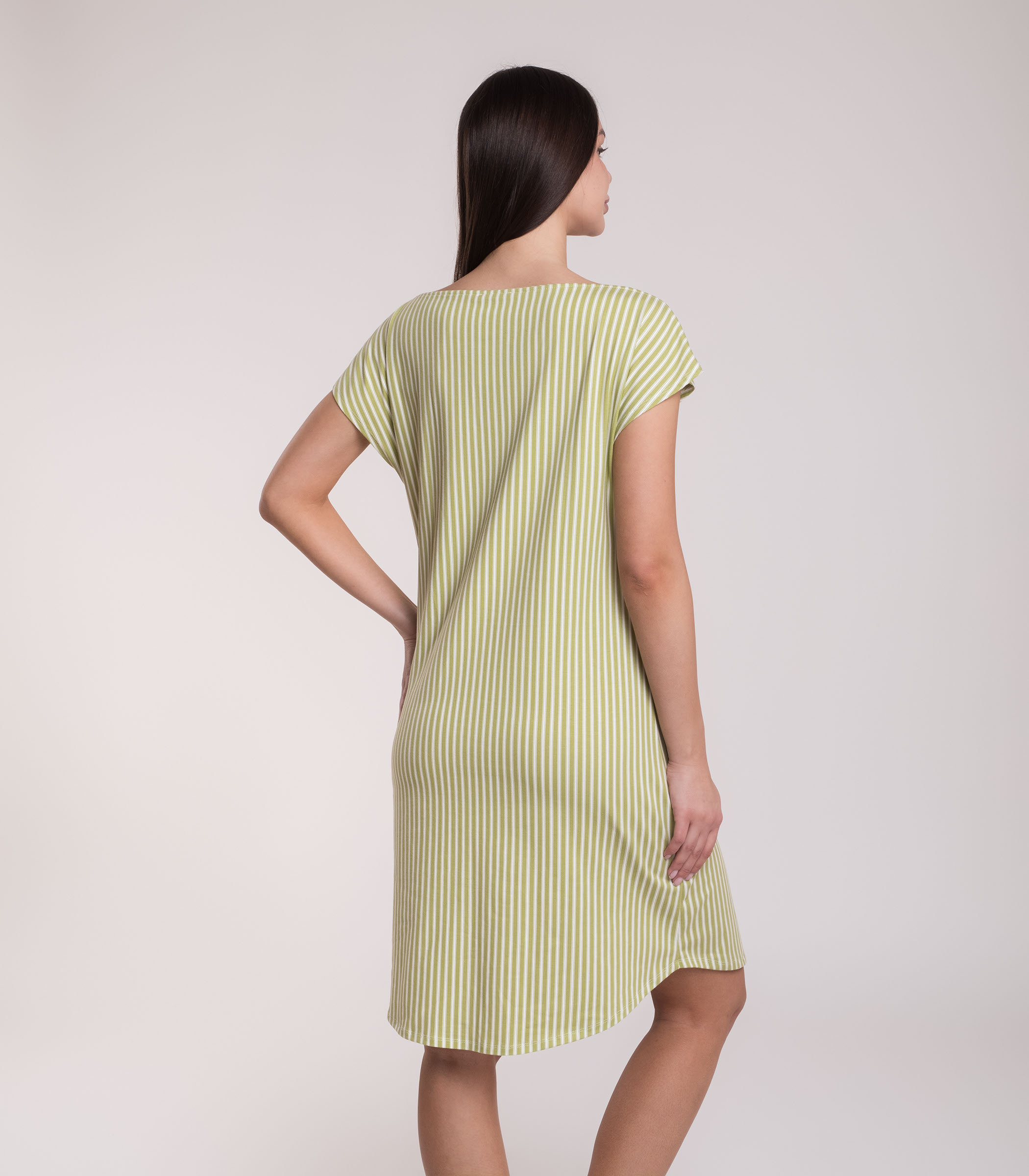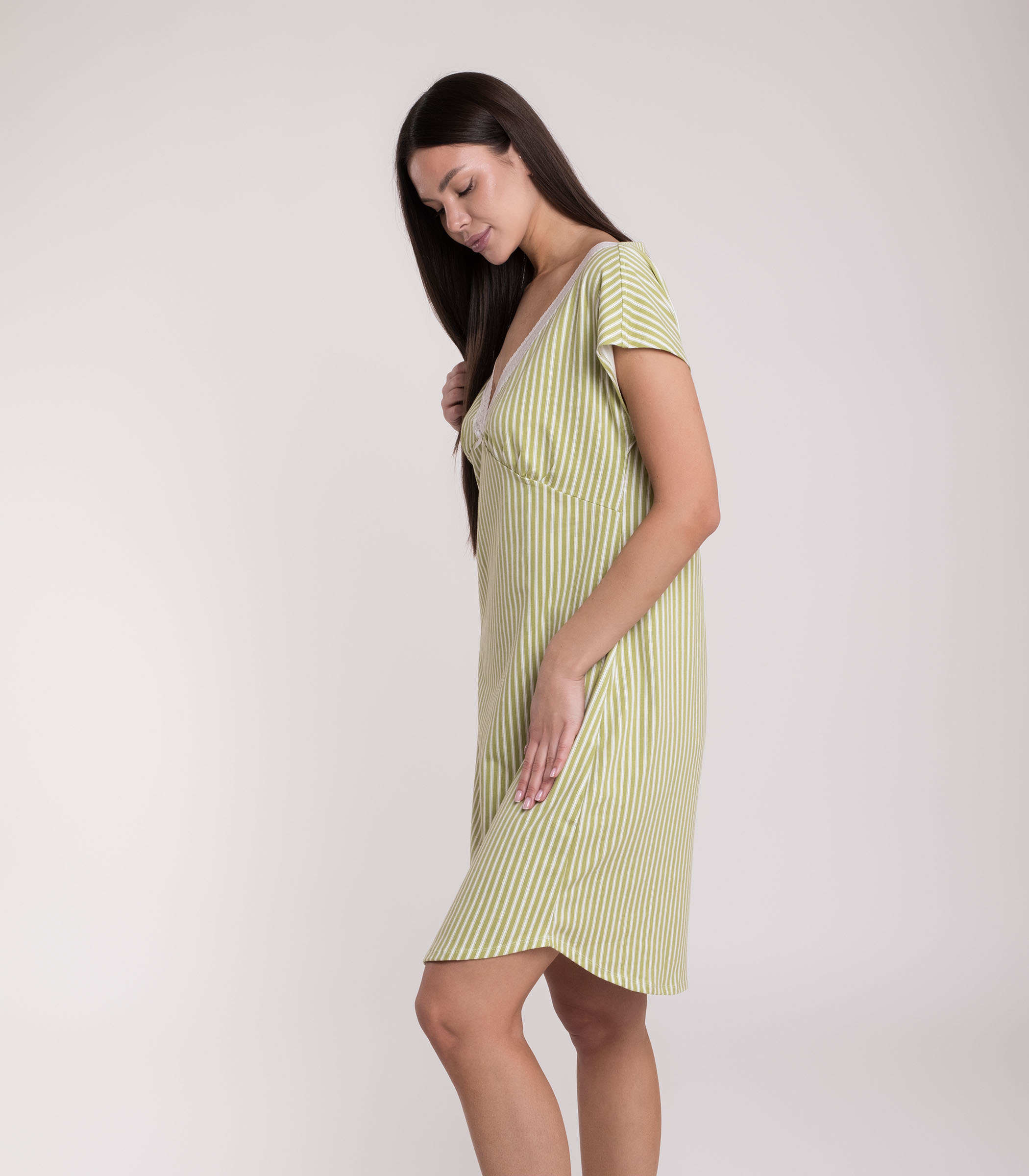 Элегантная сорочка выполнена из мягкого хлопкового полотна. Модель свободного силуэта с коротким рукавом. Зона декольте отделана ажурным кружевом. Сорочка обеспечивает комфорт во время сна и домашнего отдыха.