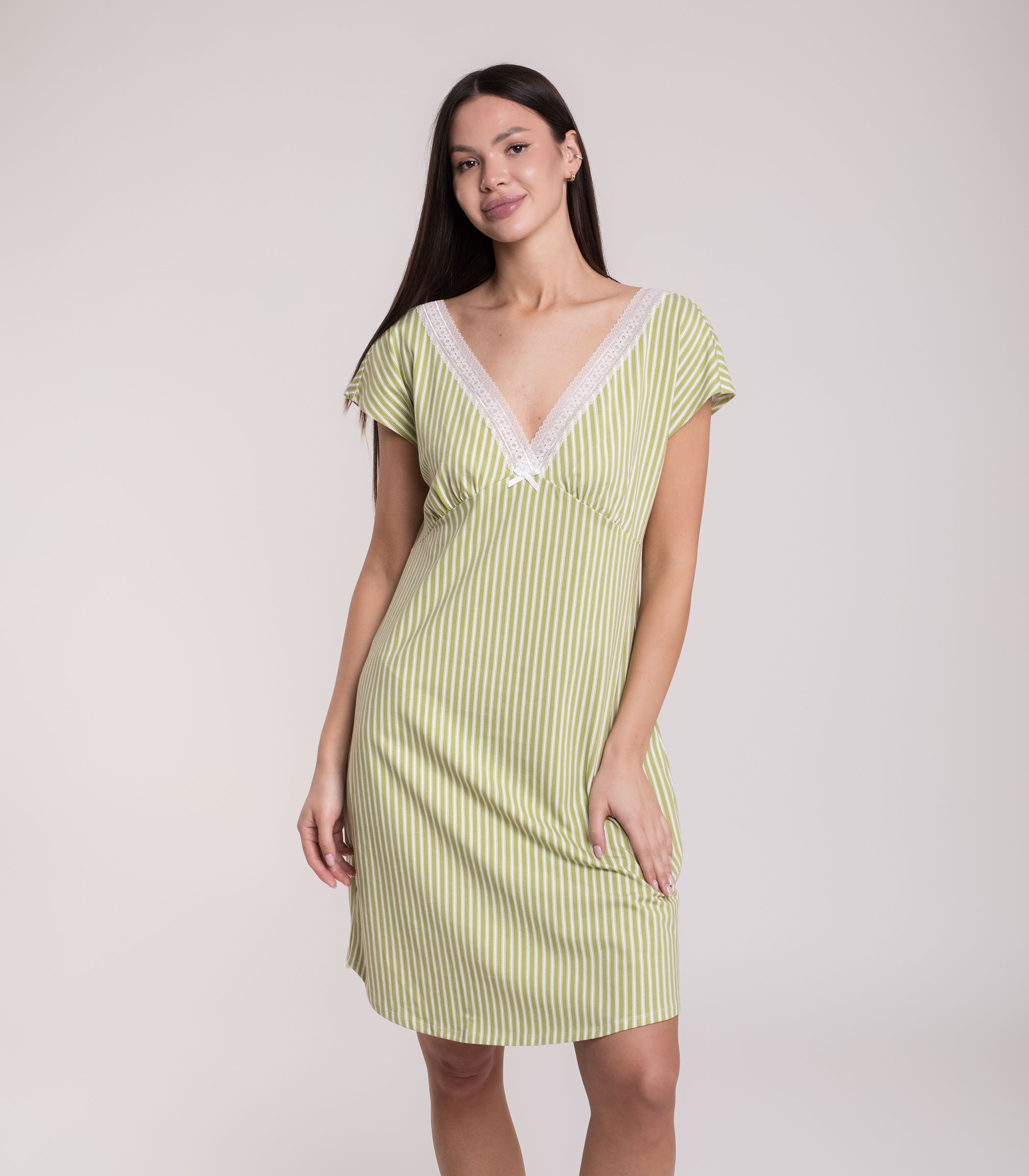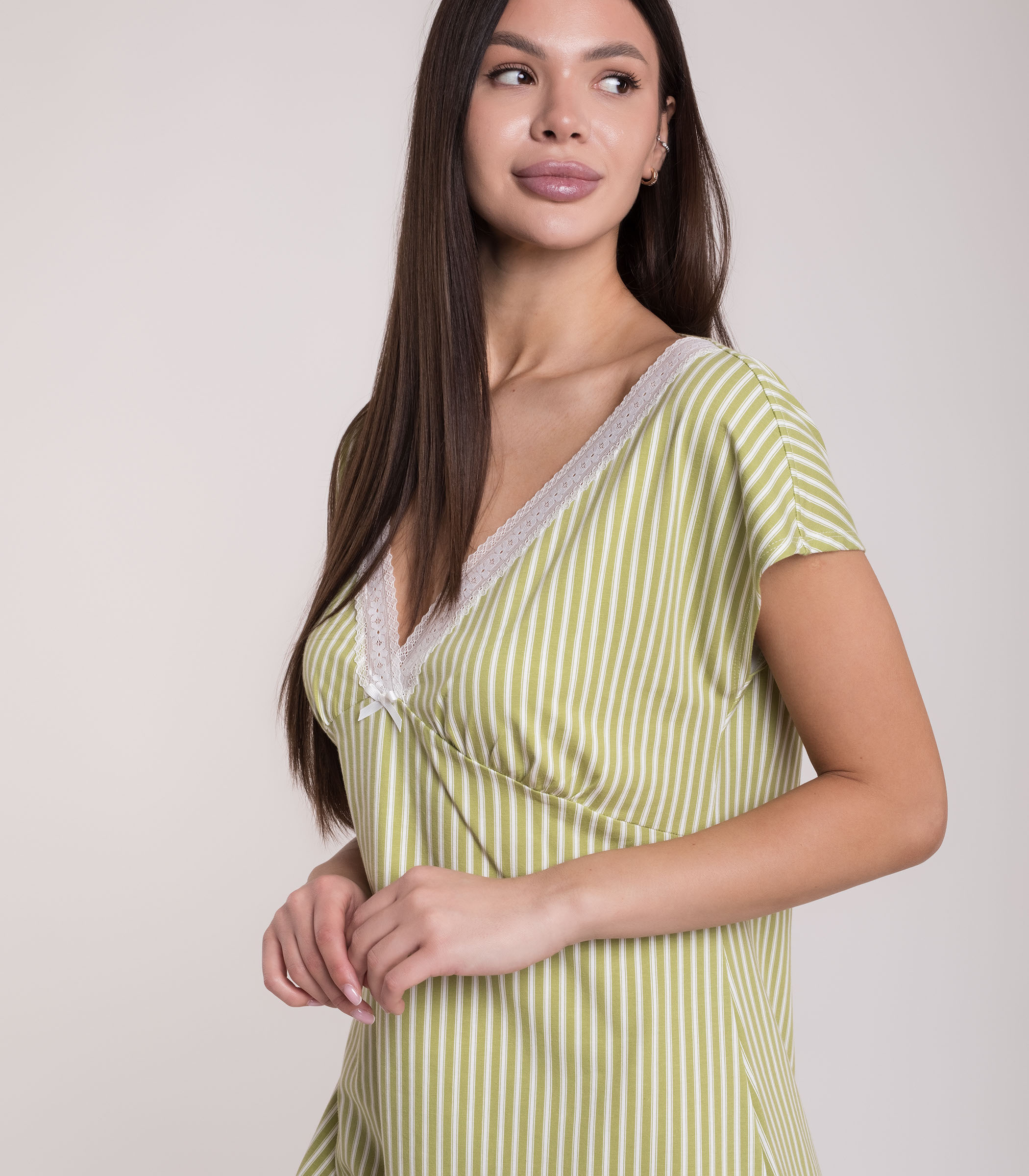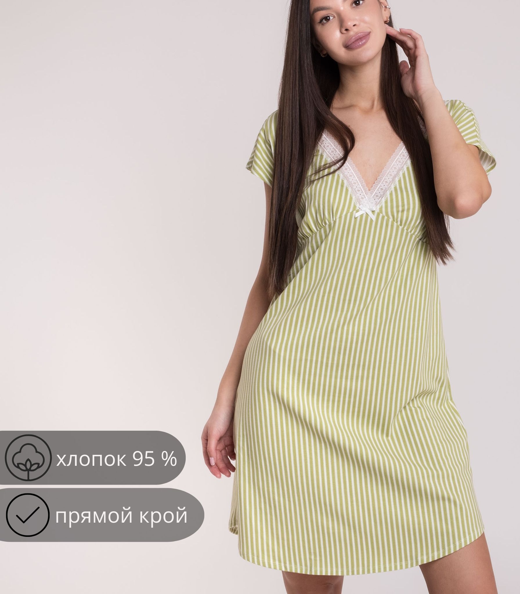Элегантная сорочка выполнена из мягкого хлопкового полотна. Модель свободного силуэта с коротким рукавом. Зона декольте отделана ажурным кружевом. Сорочка обеспечивает комфорт во время сна и домашнего отдыха.;