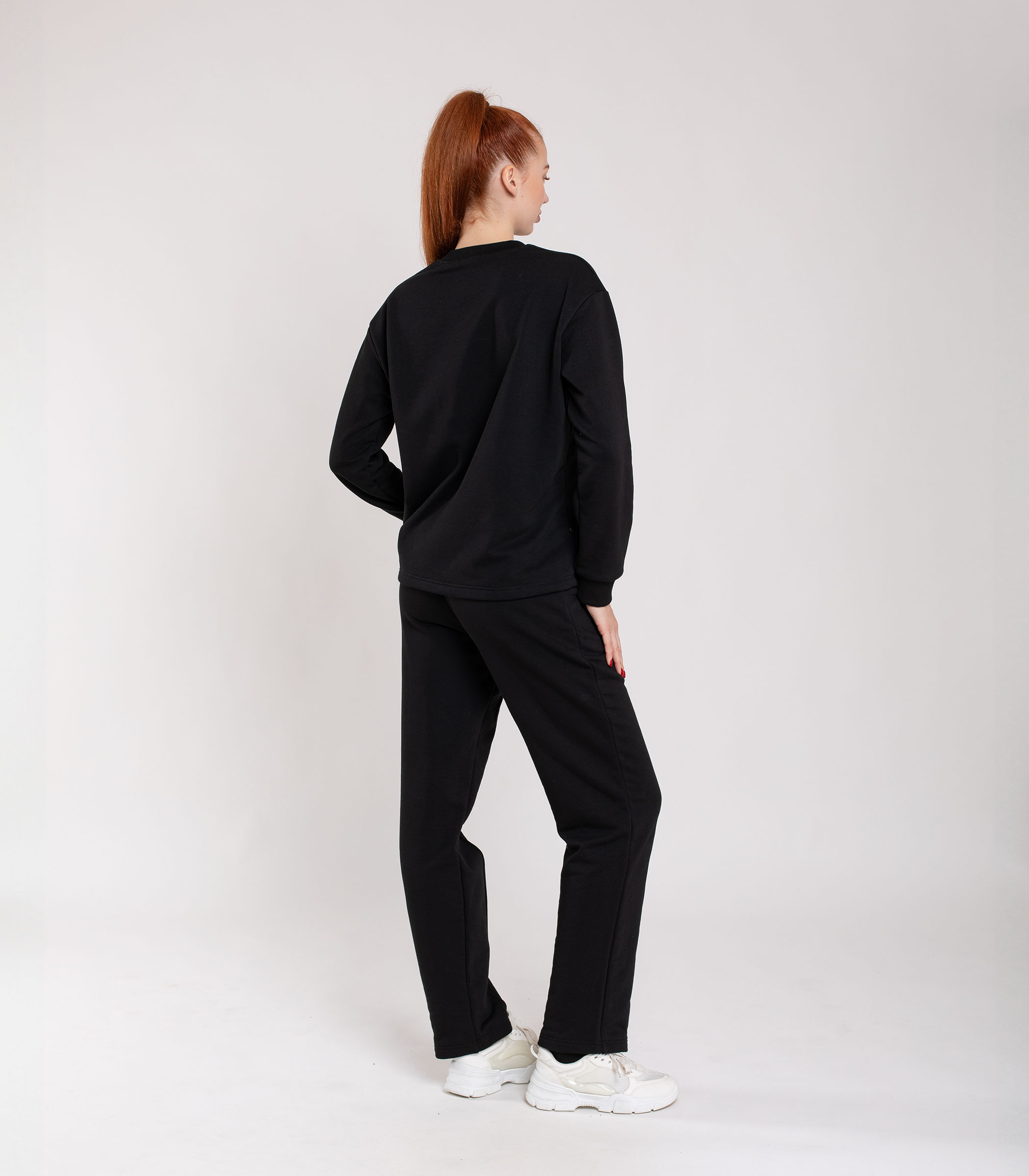 Женский оверсайз джемпер выполнен из футера трехнитки. Модель с круглой горловиной и длинными рукавами на манжетах. Джемпер отлично вписывается в базовый гардероб и хорошо сочетается как со спортивным, так и с повседневным стилем.;