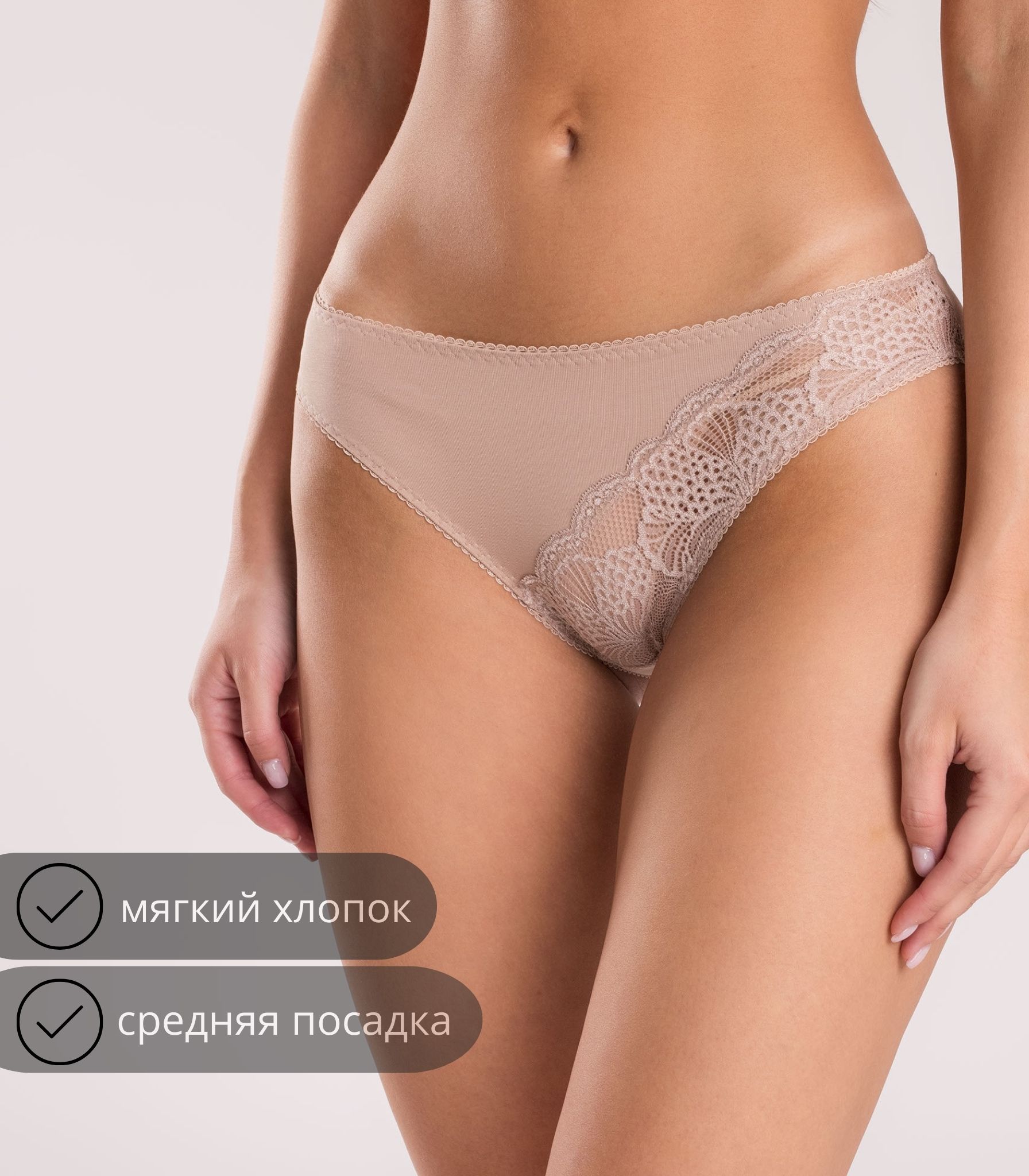 Практичные трусики на классической посадке выполнены из мягкого хлопкового полотна. Модель дополнена мягким ажурным кружевом. Трусы идеально подойдут для повседневного использования и не будут видны под одеждой.
