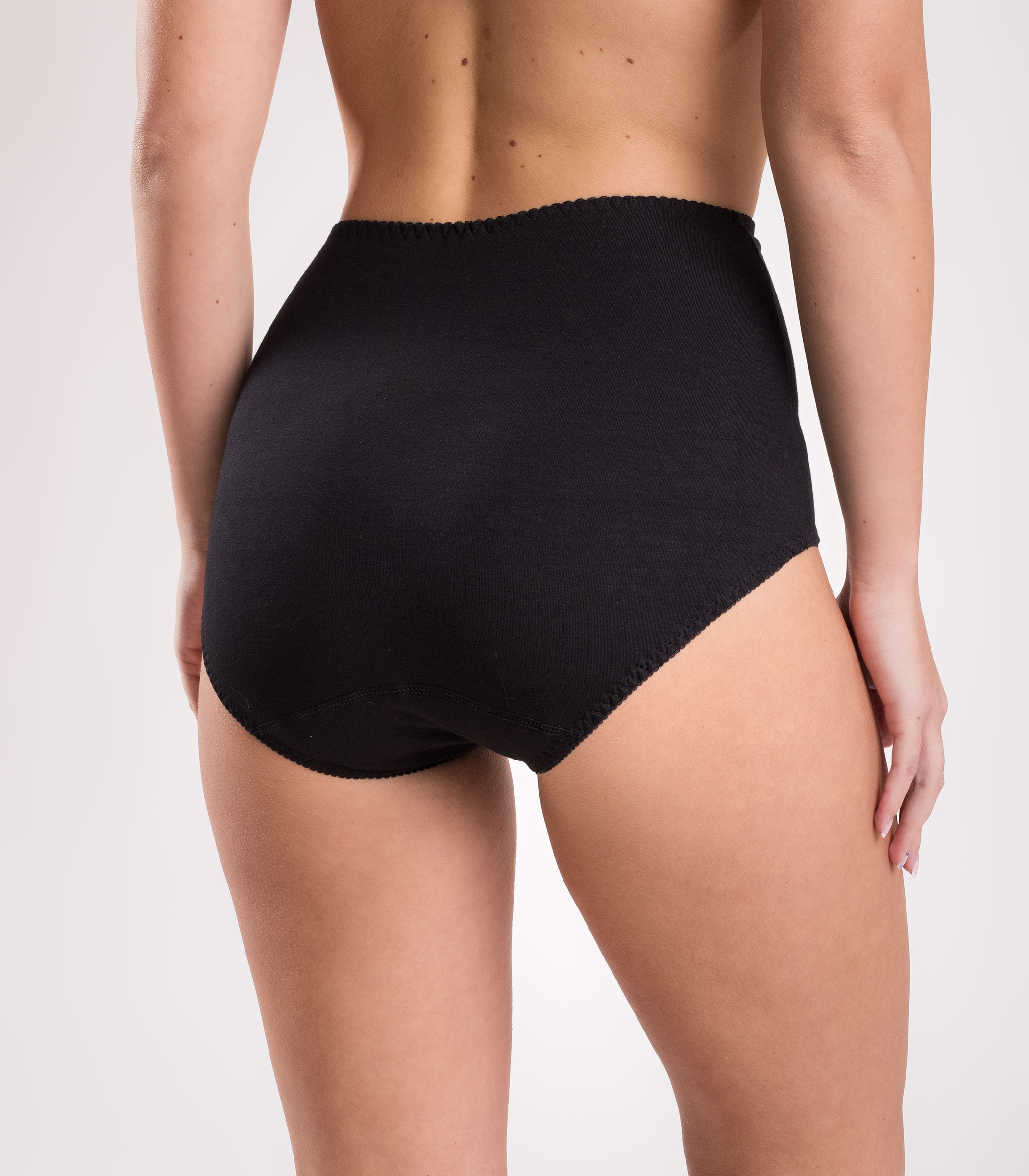 Корректирующая модель трусов с завышенной талией. За счет эластичности и нежности полотна белье комфортно сидит на фигуре и не сковывает движения. Хлопковые трусы дополнены ажурным кружевом.