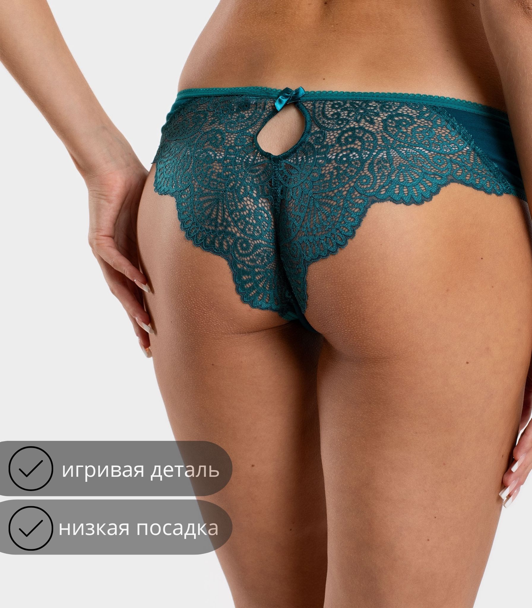 Комфортные трусики-бикини выполнены из мягкого хлопка. Задняя деталь из ажурного кружева с капелькой. Классическая посадка отлично подходит для любого типа фигуры.