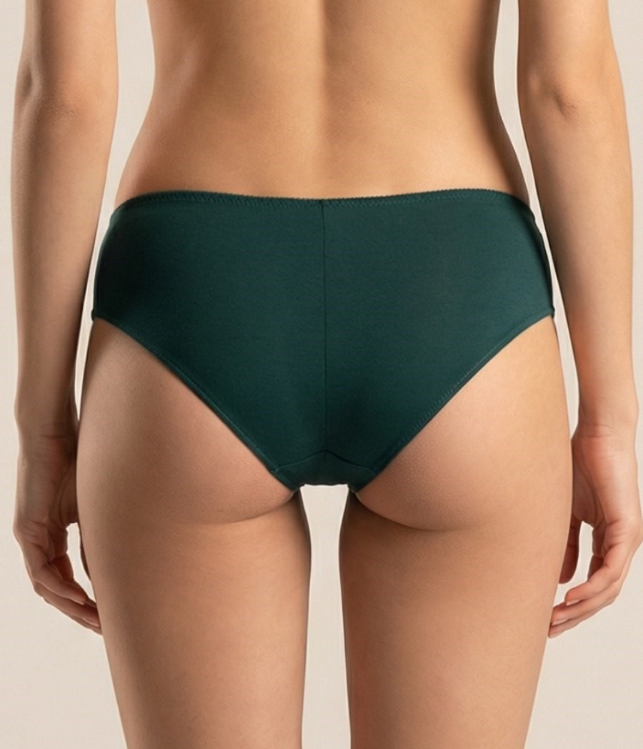 Классические хлопковые трусики с эффектной кружевной деталью. Модель на средней посадке отлично сидит на фигуре и подчеркивает ягодицы. Трусы мягкие на ощупь, плотно прилегают к телу и практически не заметны под одеждой.