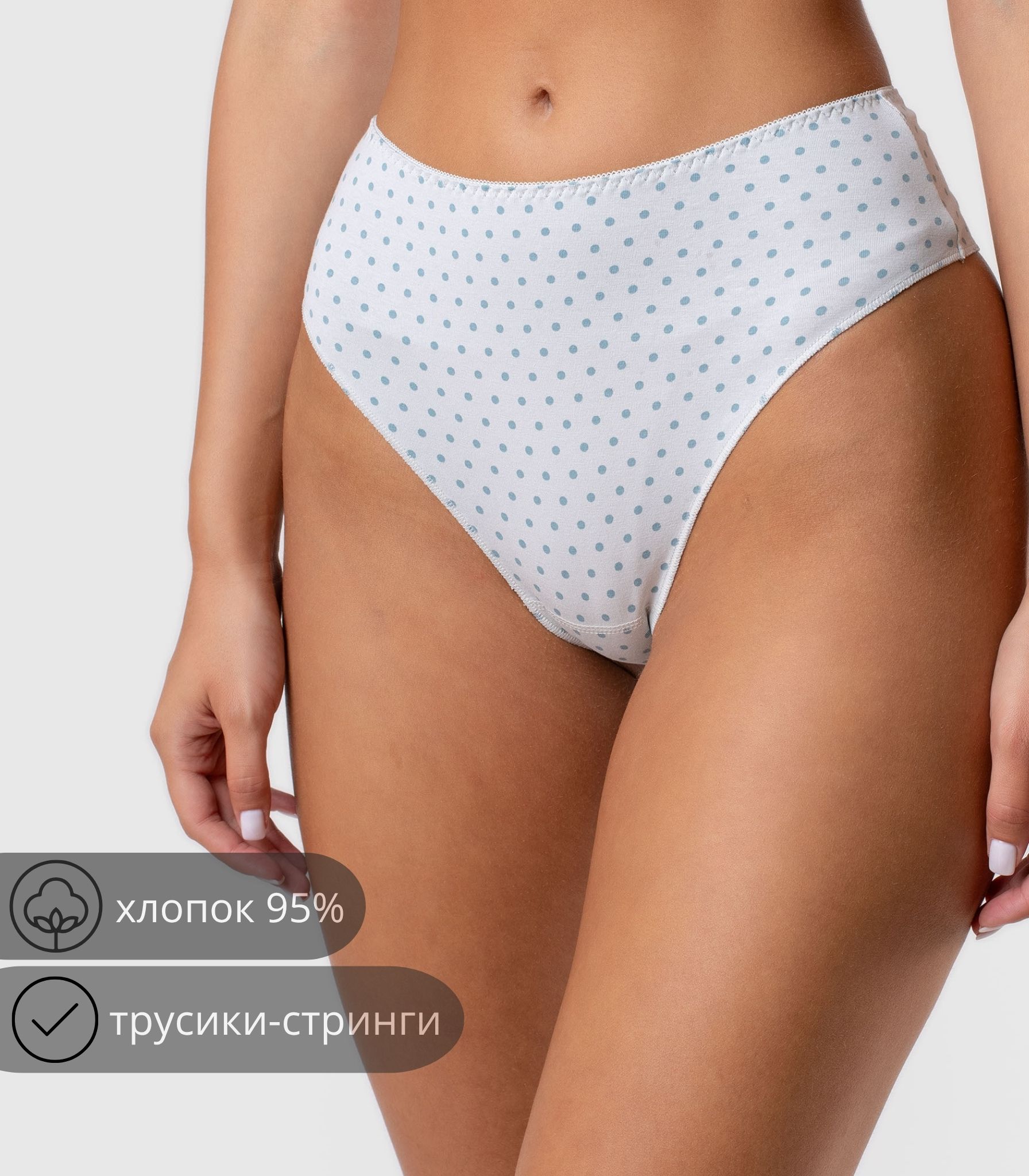 Базовые трусики-стринги на завышенной посадке выполнены из мягкого хлопкового полотна. Модель комфортно сидит по фигуре и незаметна под одеждой. Посадка трусов вытягивает силуэт и удлиняет ноги.;