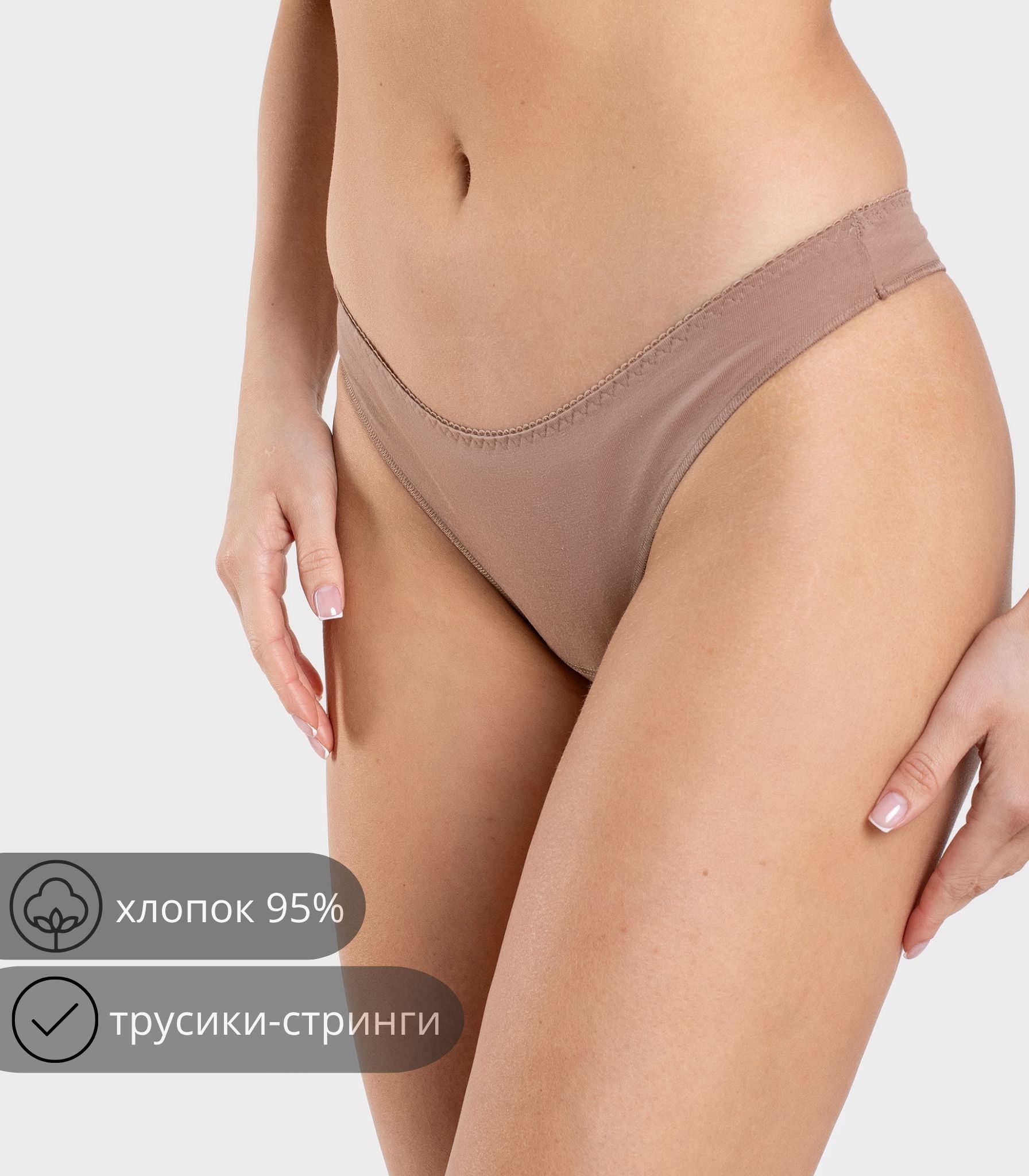Базовые трусики-стринги выполнены из мягкого хлопкового полотна с добавлением эластана. Модель на заниженной посадке. Трусы минималистичные, комфортно прилегают к телу и незаметны под одеждой.;