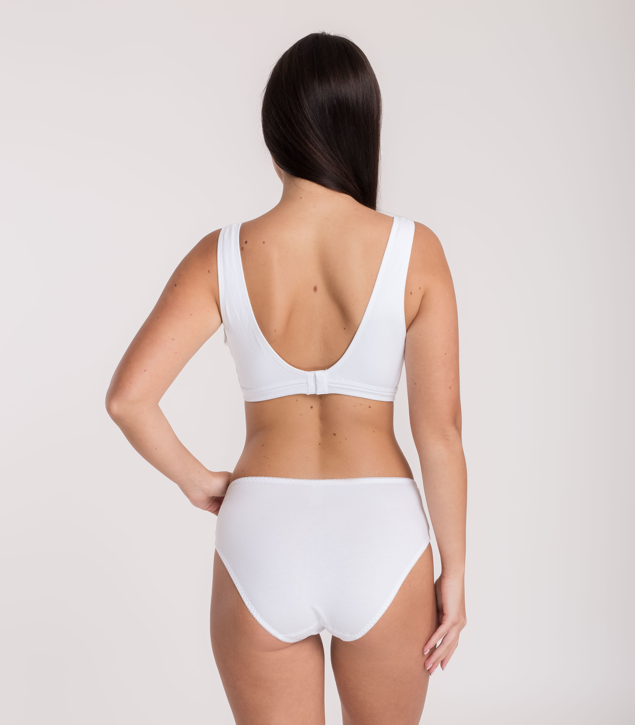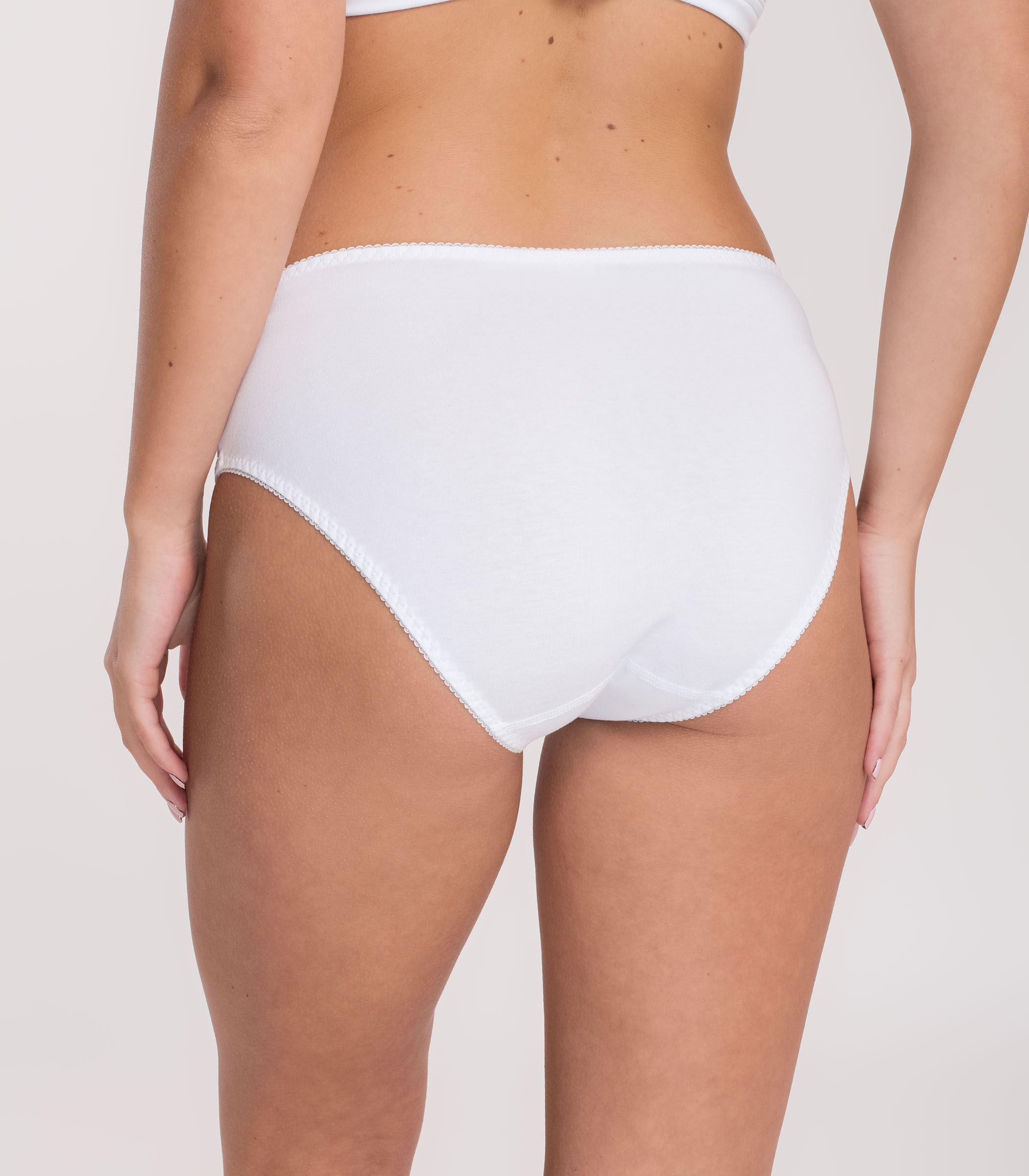 Женские трусики-слипы из высококачественного хлопка на завышенной посадке. Передняя деталь декорирована кружевом и бантиком.