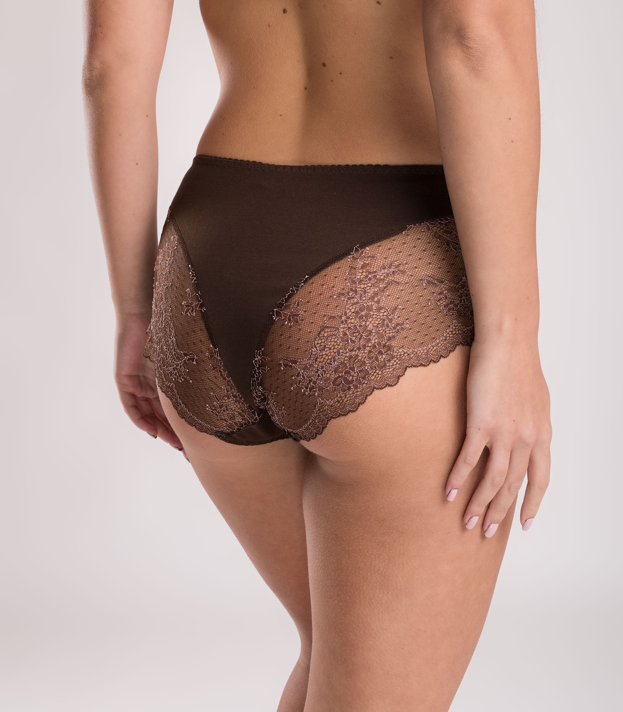 Практичная модель белья отлично подойдет для повседневного использования. Трусики с завышенной посадкой, по ножке оформлены красивым кружевом.;