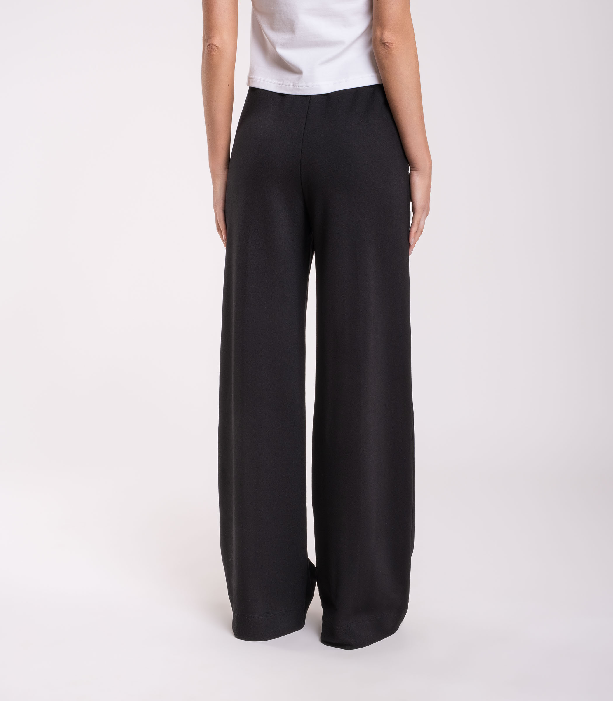 Брюки-палаццо с завышенной посадкой на талии, простроченной стрелкой, удобными боковыми карманами и поясом на широкой резинке. Эффектная модель идеальна для уличного стиля и удобна для носки дома.;
