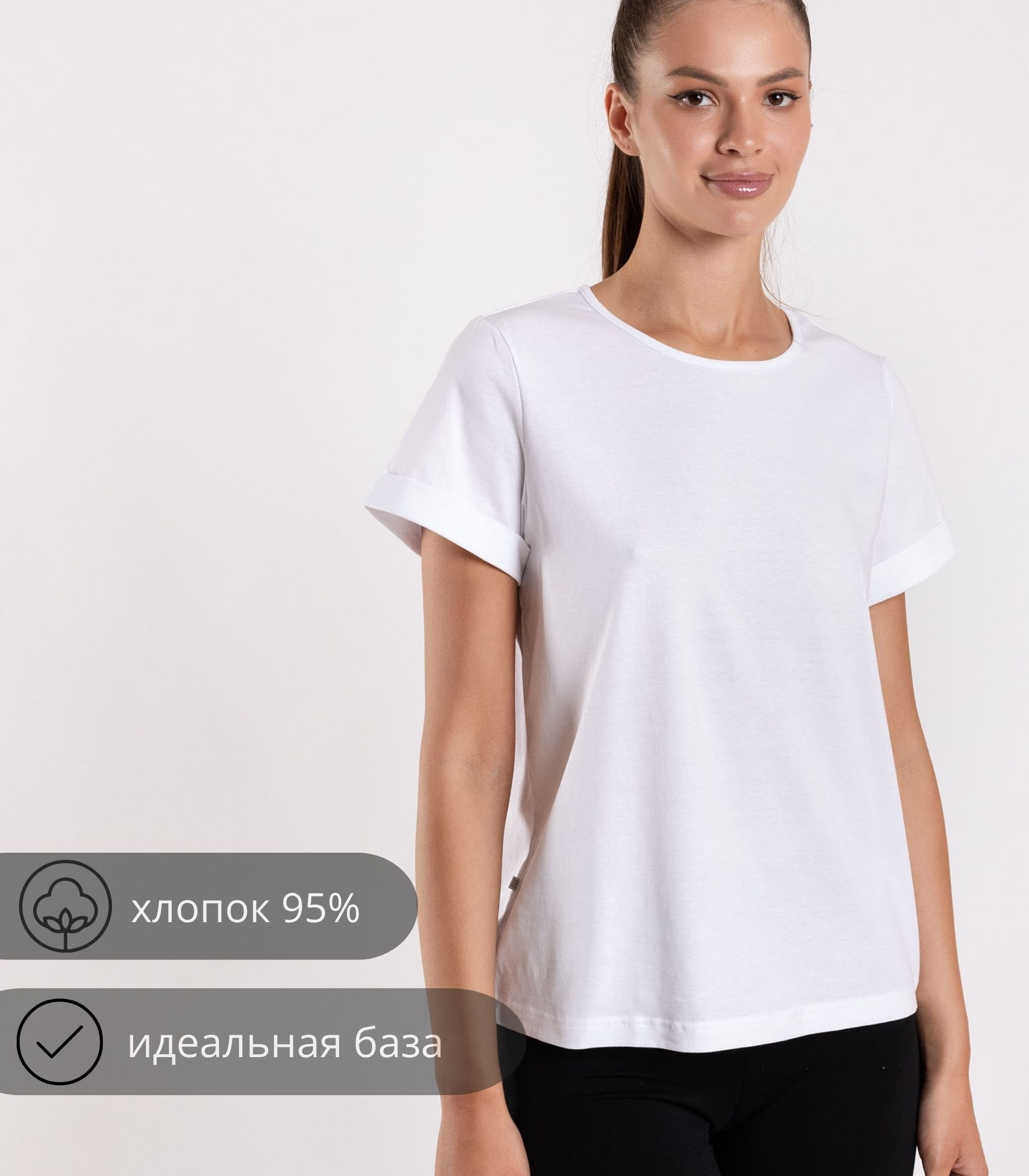 Стильный джемпер свободного силуэта изготовлен из высококачественного хлопка. Базовая модель с круглым вырезом горловины и короткими рукавами с манжетами на концах. Футболка может быть использована как самостоятельный элемент одежды или в качестве базовой детали для создания многослойных образов.;